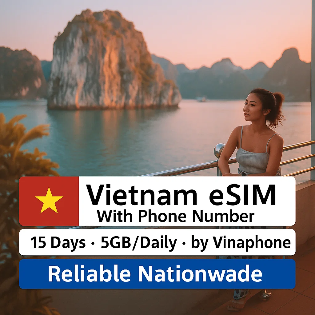 Stay connected in Vietnam with a VinaPhone eSIM — including a real Vietnamese phone number, 4G/5G data, and calling credits. It’s the most convenient all-in-one option for travelers who want to make local calls, receive OTPs, and enjoy fast mobile data right after landing.